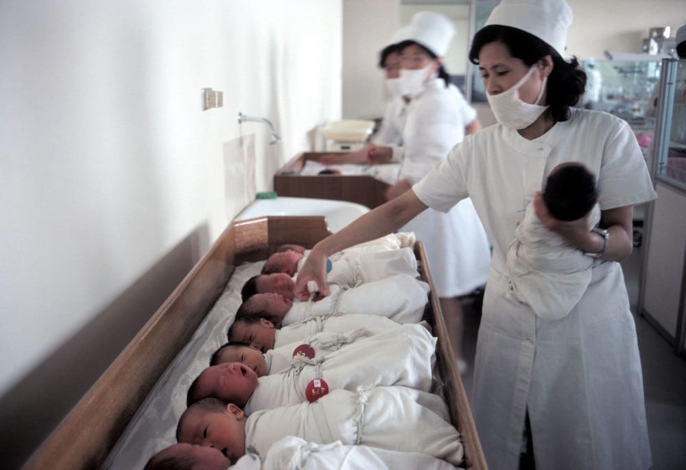 At a Pyongyang model maternity hospital, Pyongyang, North Korea 1981 - Hiroji Kubota (source Magnum)