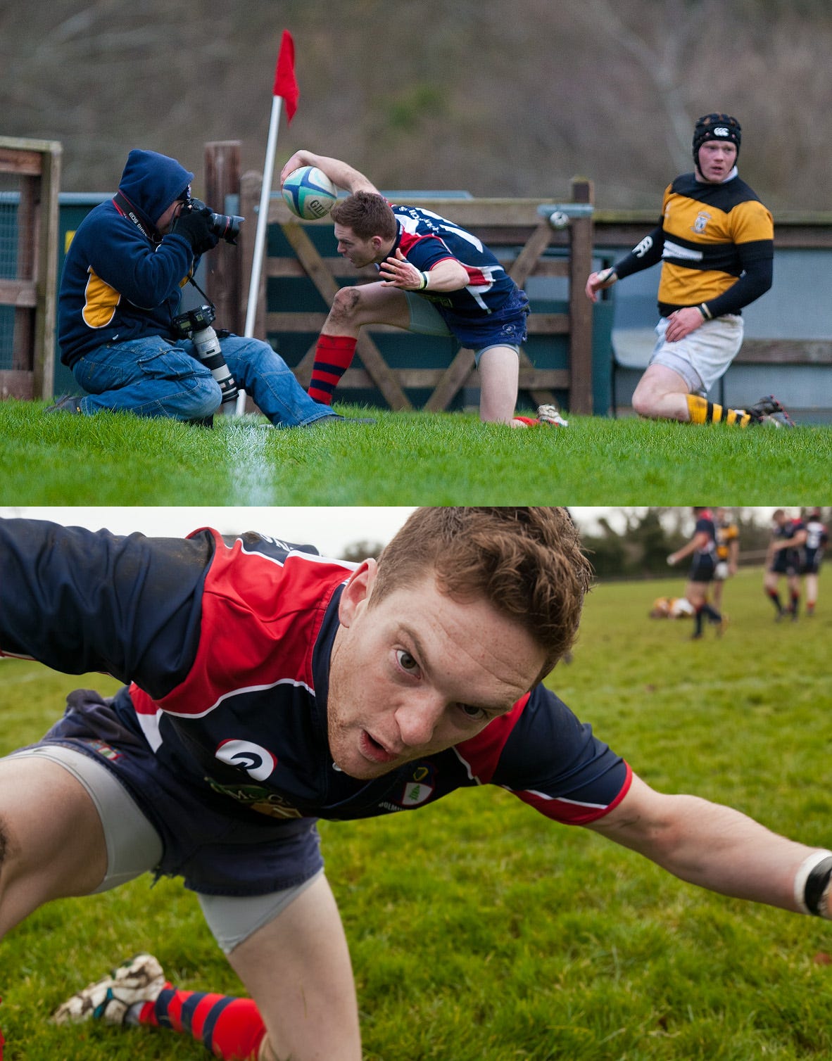 4. Not all the action is happening close to you. In all cases, during a match, photographers are not allowed on the pitch. Taking this in consideration, you need a telephoto lens capable to bring the action close to you. Sometimes the action is coming close and, in this case the telephoto lens won’t help; it is time to use a normal or a wide-angle lens. The best solution (if can afford) is to have two cameras with two different lenses, one for each situation.